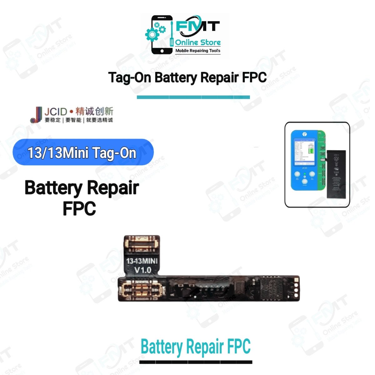 JCID JC V1SE Battery Repair Board Flex Cable for IPhone Non-Genuine Battery Warning Health Repair Battery Pop Ups. Features: JCID full series tag-on and built-in battery repair FPC is the flex cable used for iPhone 13/13Mini series battery repair. It has upgraded with new functions, including free from battery boot and battery flex cable green testing. It features installation without restart, original wrapped hidden design, traceless repair and deinstallation automatic protection functions which are conductive to battery protection and safer repair. List of Packing: Battery repair FPC*1